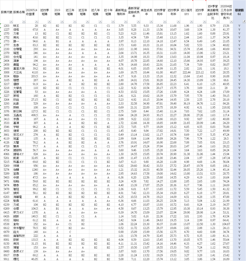 今年第二季季報出爐,本次有興趣有佳格(1227)、力肯(1570)、勝一(1773)、生泰(1777)、台積電(2330)、義隆(2458)、穩懋(3105)、優群(3217)、大學光(3218)、原相(3227)、欣銓(3264)、鈊象(3293)、熱映(3373)、玉晶光(3406)、京鼎(3413)、嘉澤(3533)、宇峻(3546)、健策(3656)、國碳科(4754)、凱衛(5201)、科嘉(5215)、祥碩(5269)、信驊(5274)、宜鼎(5289)、松翰(5471)、聰泰(5474)、智冠(5478)、海韻電(6203)、聚鼎(6224)、力成(6239)、台郡(6269)、矽力(6415)、統新(6426)、瑞耘(6532)、倉和(6538)、鈺太(6679)、雍智科(6683)、致新(8081)、南茂(8150)、博智(8155),預計從中選5。
