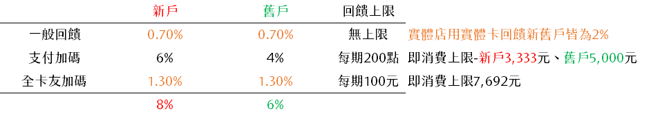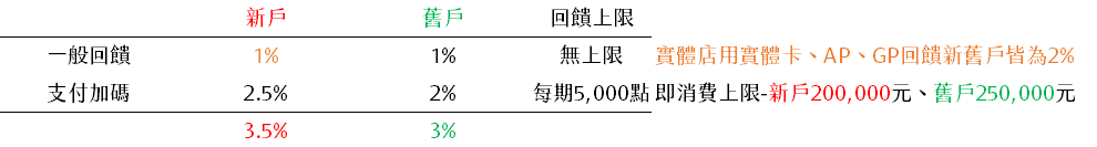 一般回饋、支付加碼採點數方式回饋,集滿300點才能換成300元,但點數終身適用