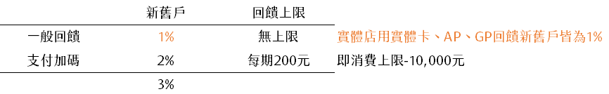 適用ApplePay、GooglePay、LinePay,當月消費須滿3,000元,需要每月登錄